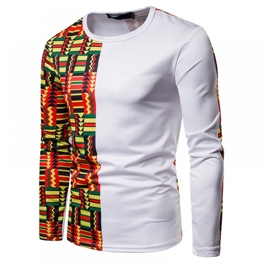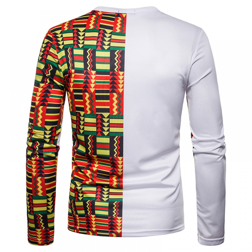 Men's 3D Printing Color Matching Large Round Neck Long Sleeve T-Shirt