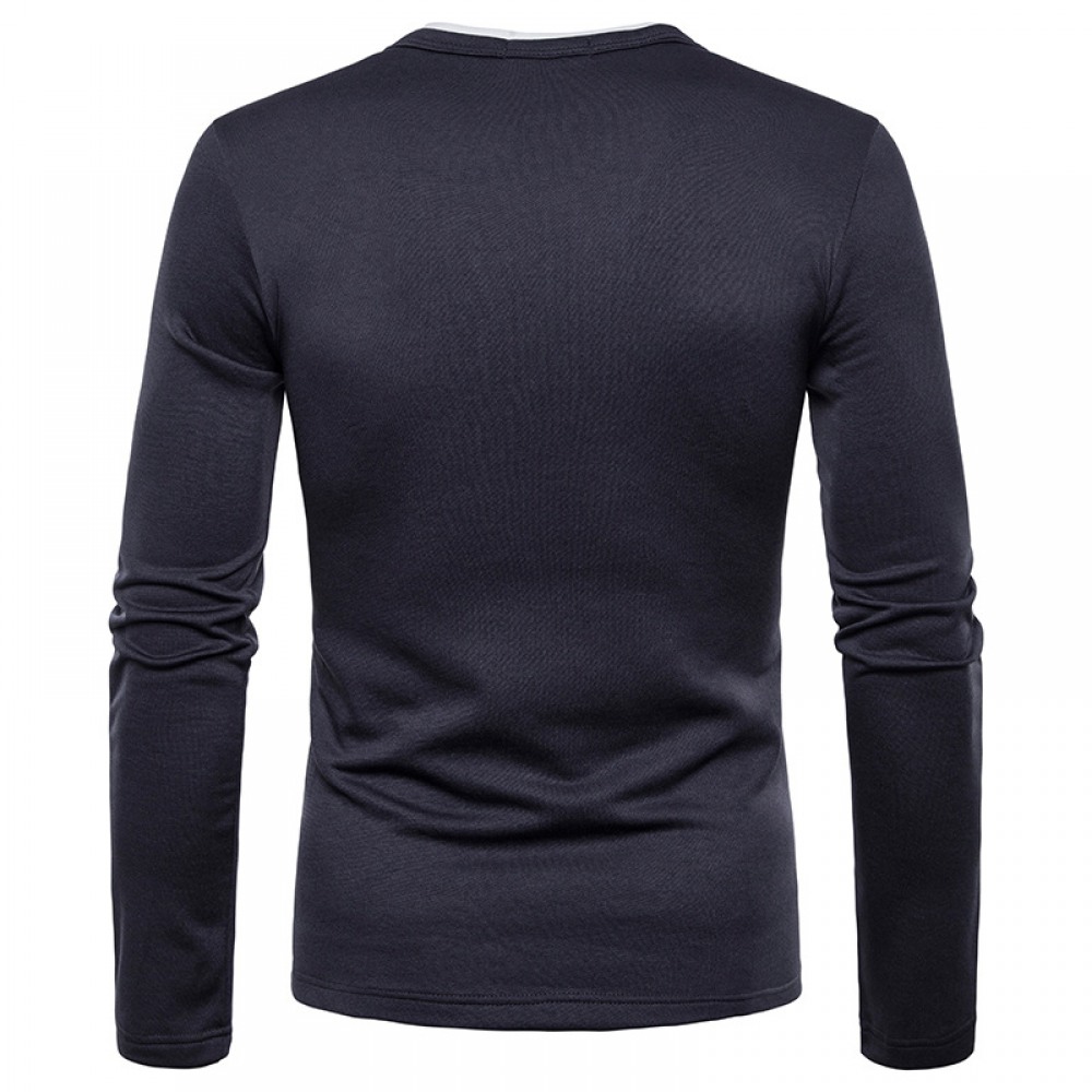 Men's Plus Size Plus Velvet Warm Henley Collar Long-Sleeved T-Shirt Bottoming Shirt