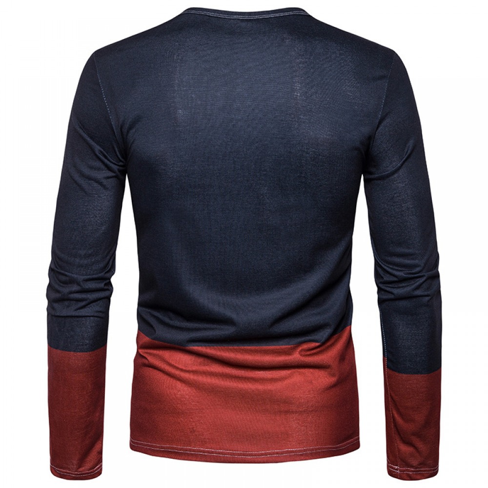 Men's 3D Printing Color Matching Large Round Neck Long Sleeve T-Shirt