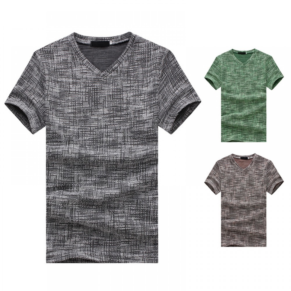 New Summer Men's Short-Sleeved T-Shirt Mens Contrast Striped Slim Casual T-Shirt