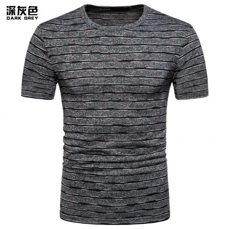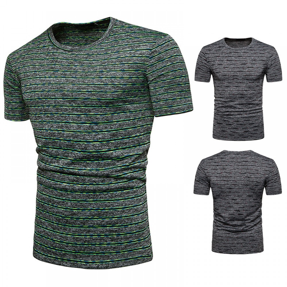 New Summer Men's Short-Sleeved T-Shirt Men's Contrast Striped Slim Casual T-Shirt