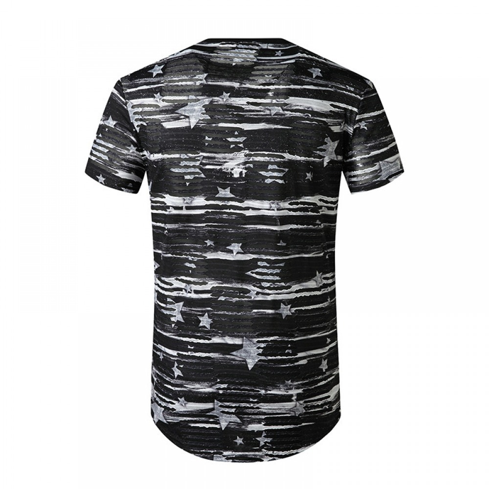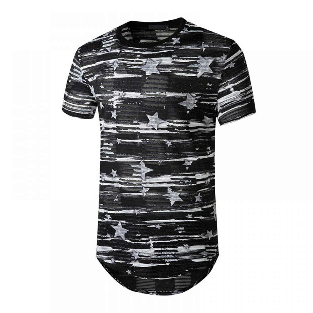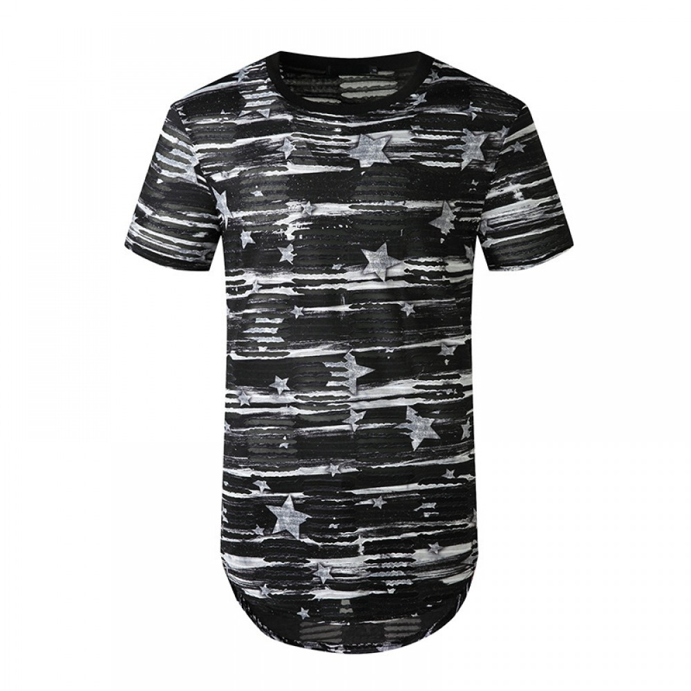 Summer New Men's Double Side Zipper High Street Hip-Hop Long Hooded Short-Sleeved T-Shirt