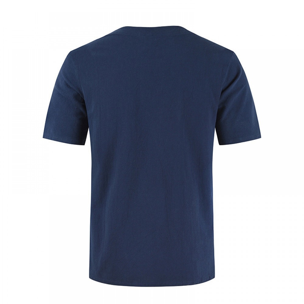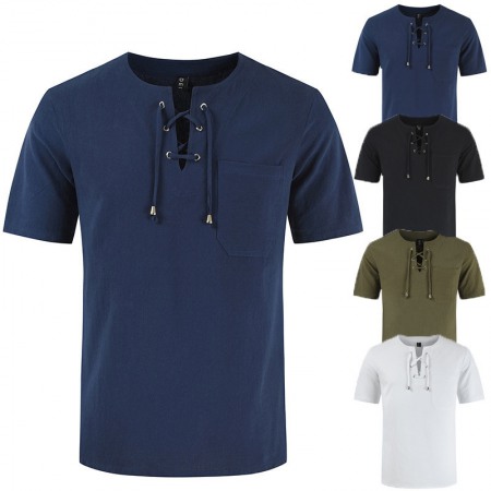 New Summer Men's Casual Street Men's Short-Sleeved T-Shirt Cotton and Linen Lace Casual Fashion