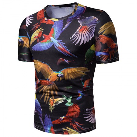 New Summer Men's Parrot Print Short Sleeve T-Shirt