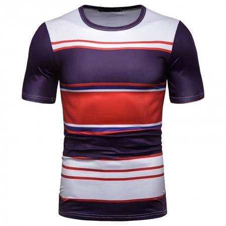 New Summer Men's Short-Sleeved T-Shirt Men's Contrast Striped Slim Casual T-Shirt
